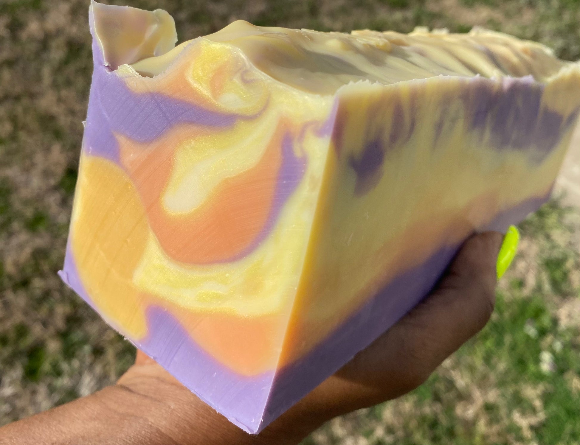 Sunrise is beautifully scented with grapefruit essential oil. This bar is filled with natural ingredients such as Cocoa butter, Shea butter, and olive oil.
